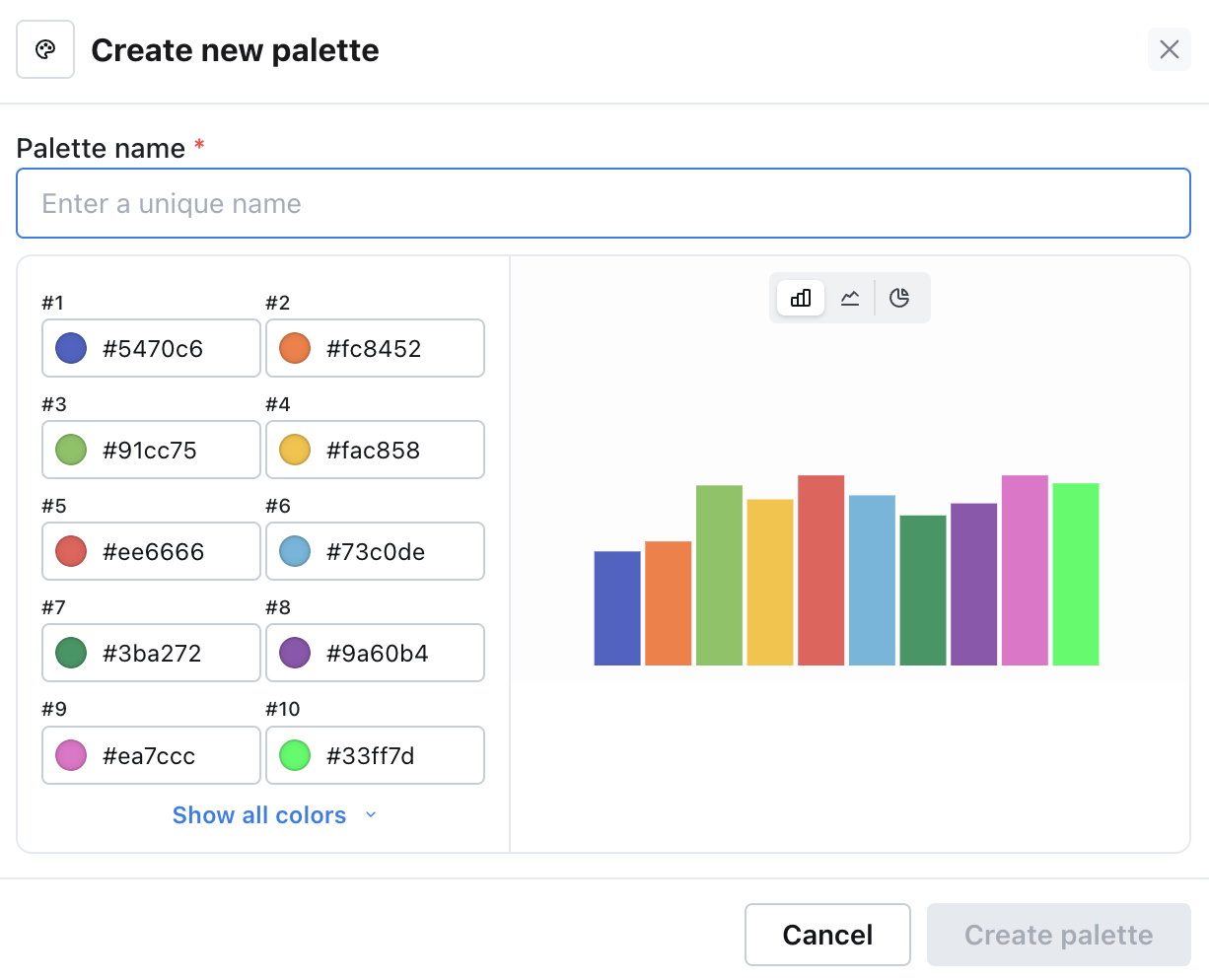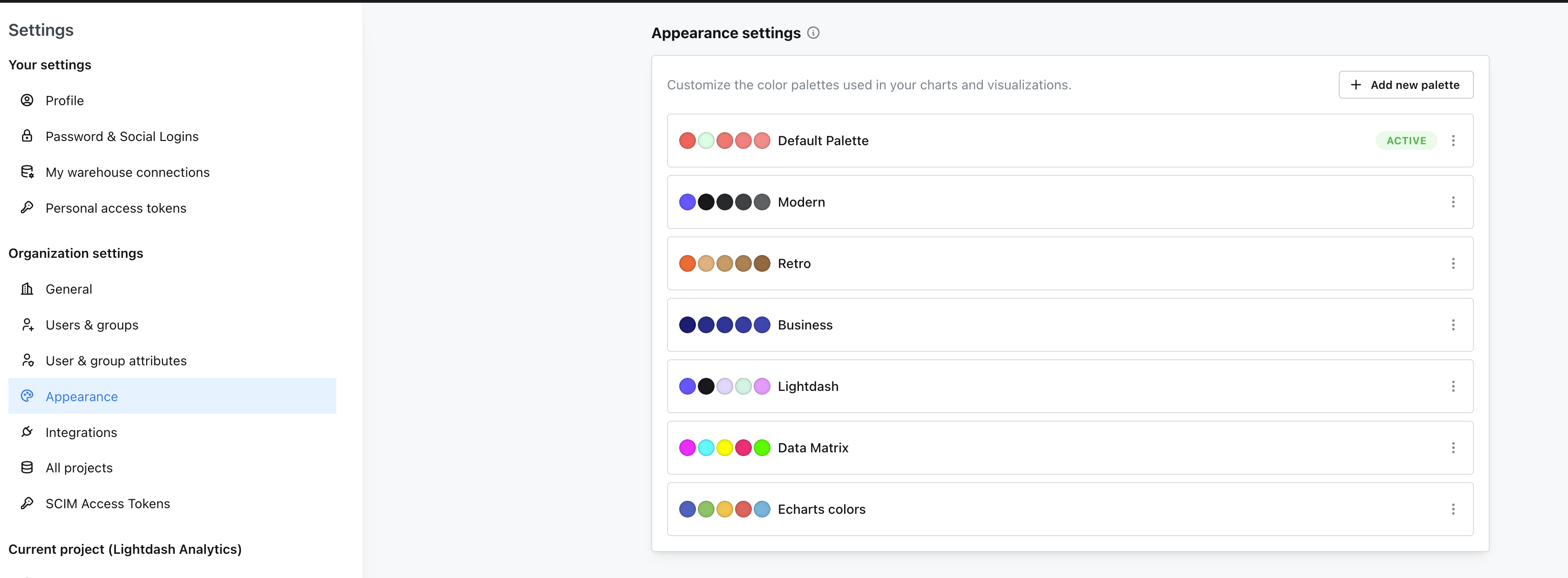 You can also create your own palette by clicking on the Add new palette button. Here you can preview the palette before you save it.