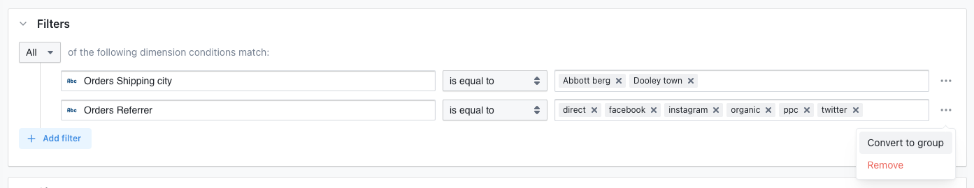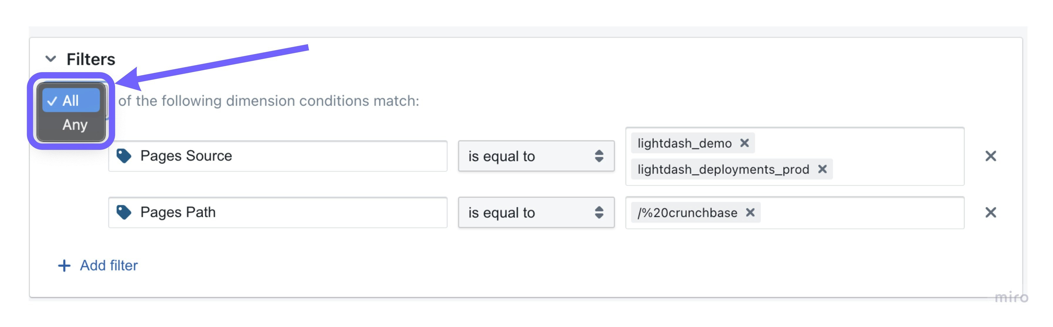 If you add multiple filters, you can choose to have ALL or ANY of the conditions match