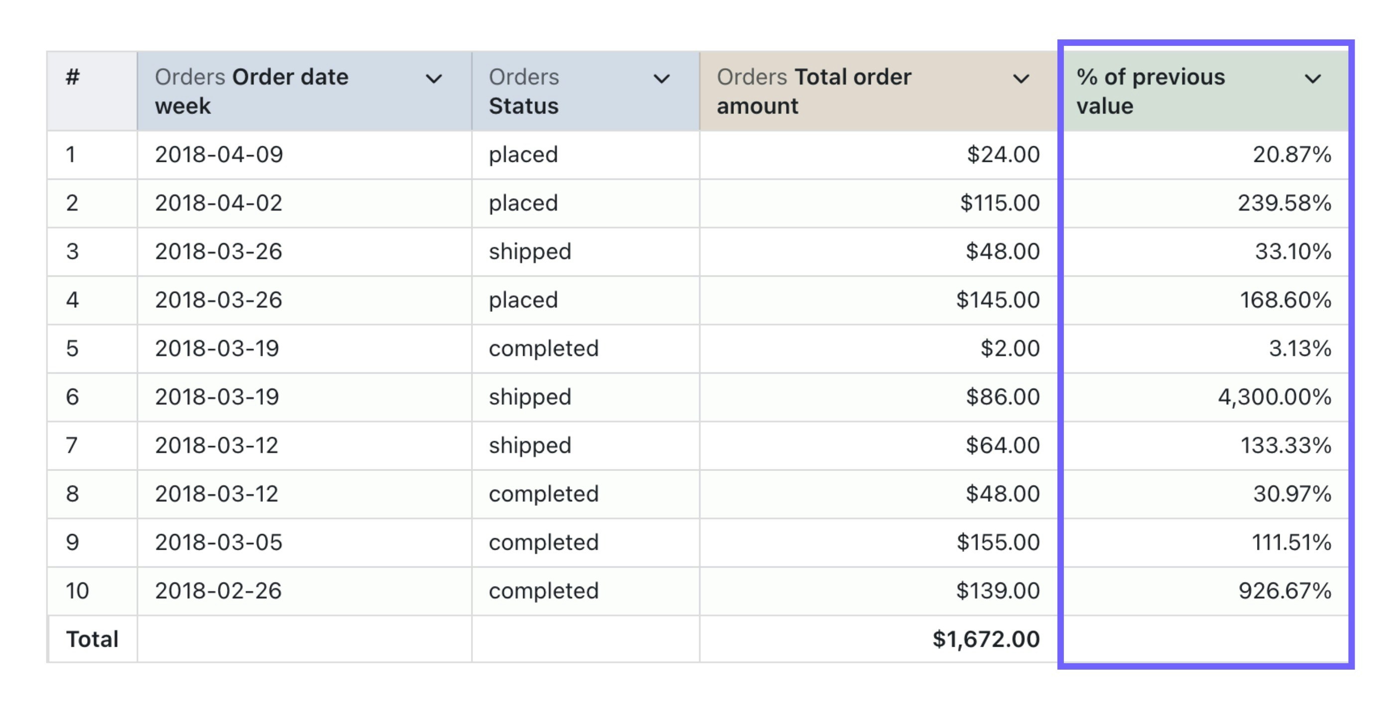 Here’s the SQL you can copy-paste to calculate the percent of the previous value
